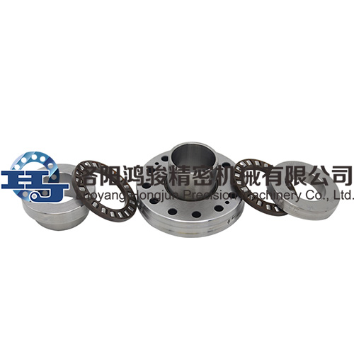 滾針/推力圓柱滾子軸承包括一個(gè)加厚的外圈、滾針保持器組件、滾針內(nèi)圈、兩個(gè)推力圓柱滾子保持器組件和兩個(gè)推理軸圈,相當(dāng)于一套滾針軸承和兩套推力圓柱滾子軸承的組合軸承,兩個(gè)推力圓柱滾子軸承中心和滾針軸承中心重合。